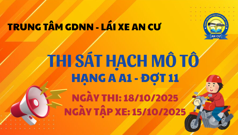 Khai giảng các khóa học lái xe tại Trung tâm GDNN – Lái xe An Cư Sáng ngày 11/10/2025, Trung tâm đã tổ chức khai giảng các khóa học: B số sàn – K20 – 2025 B STĐ – K11 – 2025 Nâng hạng C lên D – K04 – 2025 Buổi khai giảng diễn…