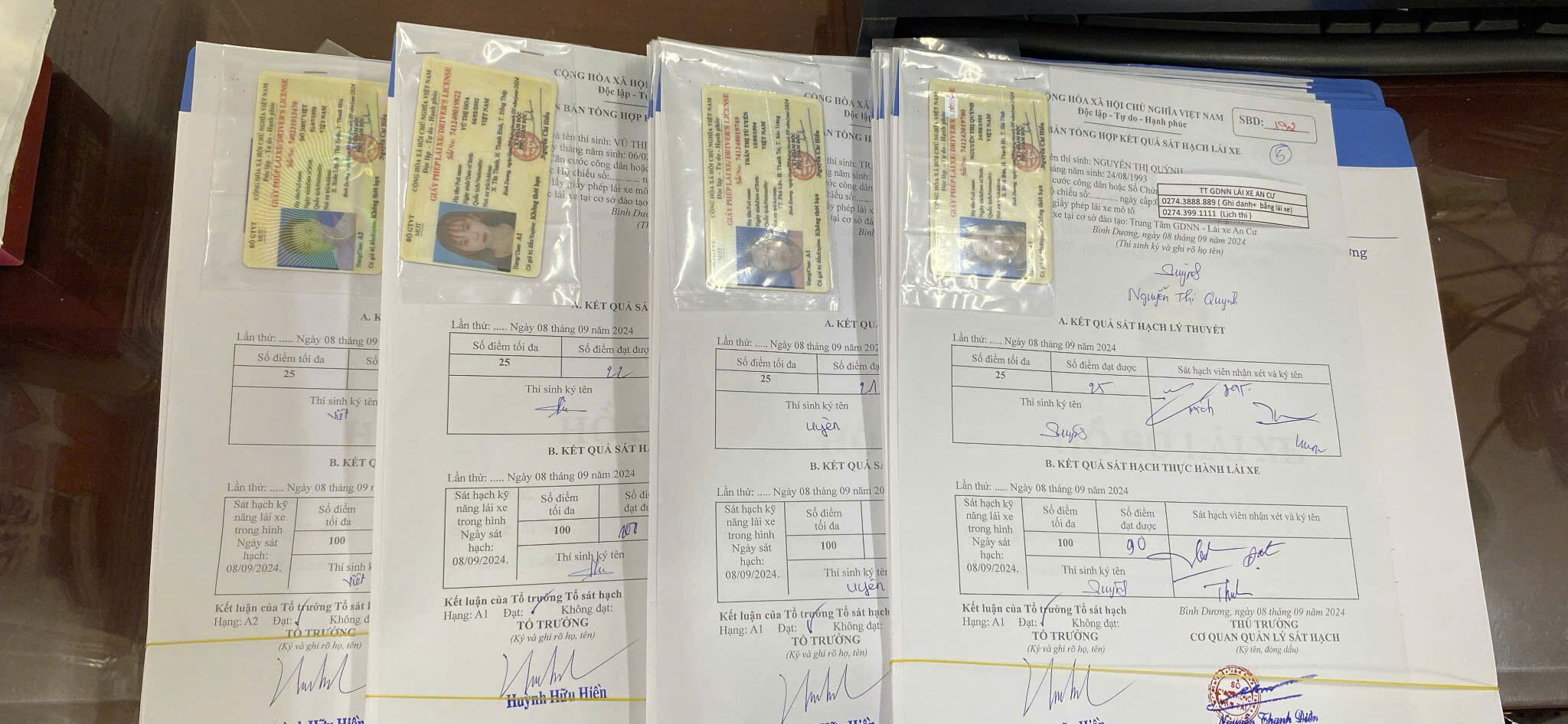 Trung Tâm GDNN-Lái Xe An Cư Xin thông báo đến quý Anh Chị học viên đã có GPLX thi sát hạch lái xe mô tô ngày 08 tháng 09 năm 2024. Mời quý Anh/ Chị học viên sắp xếp thời gian đến văn phòng Trung tâm lái xe An Cư gặp Cô Nga để nhận giấy phép lái xe hoặc liên hệ trực tiếp với giáo viên của Mình để nhận.