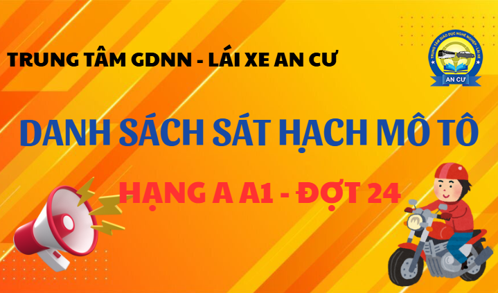 Trung tâm GDNN – Lái xe An Cư xin thông báo đến Quý Thầy/Cô và Anh/Chị học viên: Danh sách dự thi sát hạch Mô tô hạng A A1 Đợt 24(Dự kiến sát hạch đợt đầu tiên trong tháng 5/2026).