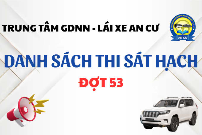 Trung tâm GDNN – Lái xe An Cư xin thông báo đến Quý Thầy/Cô và Anh/Chị học viên: Danh sách dự thi Đợt 53.