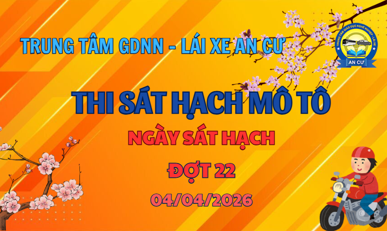 Trung tâm GDNN – Lái xe An Cư xin thông báo đến Quý Thầy/Cô và Anh/Chị học viên: