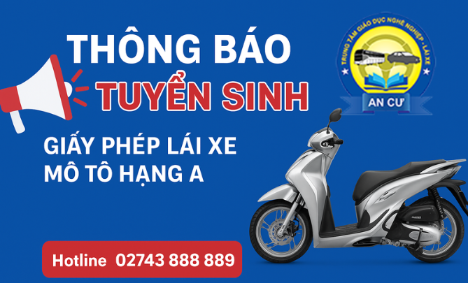 THÔNG BÁO TUYỂN SINH GIẤY PHÉP LÁI XE MÔ TÔ HẠNG A
