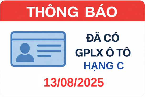 THÔNG BÁO NHẬN GPLX Ô TÔ HẠNG C ĐỢT SÁT HẠCH 13/08/2025